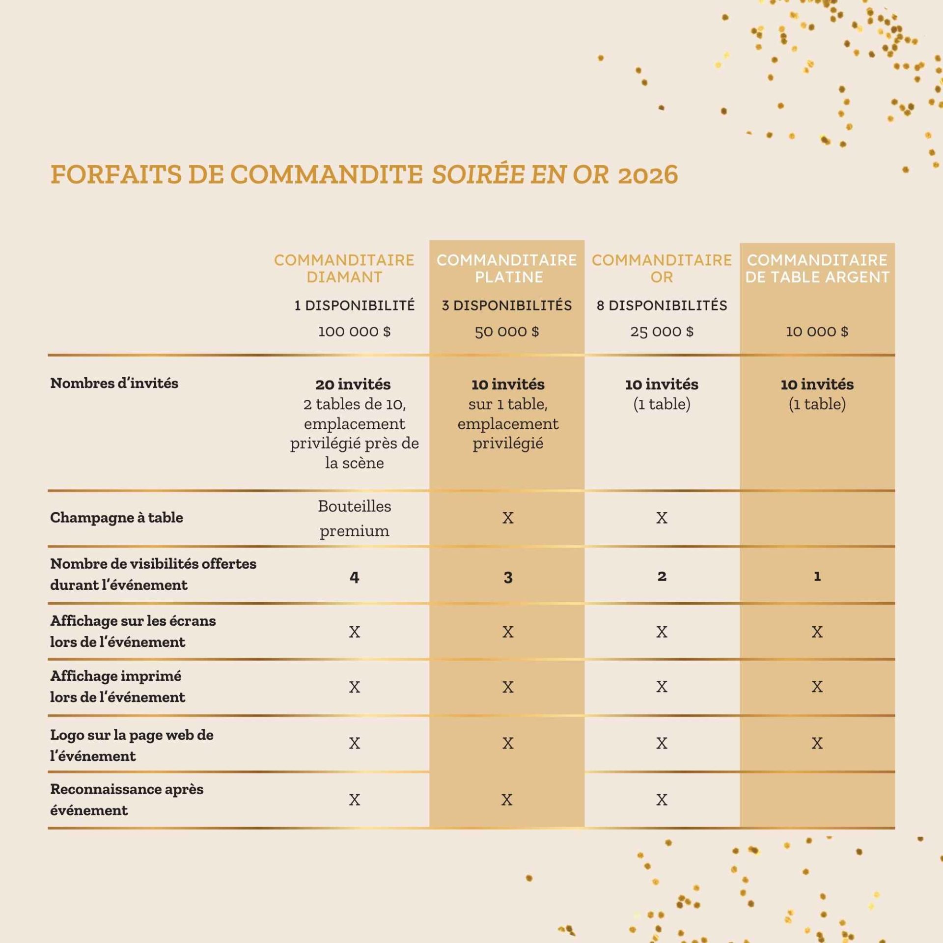 Commandites de « Soirée en or » 2026