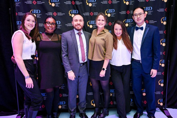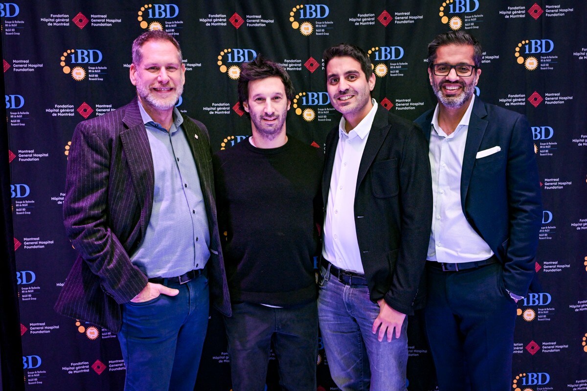 From left to right: Brian Thompson, President & CEO, MGHF; Matthew Stotland and Ryan Abrams, co-presidents of the McGill IBD Research Group Committee of volunteers; Dr. Waqqas Afif, Division Director of Gastroenterology and Hepatology, MUHC.